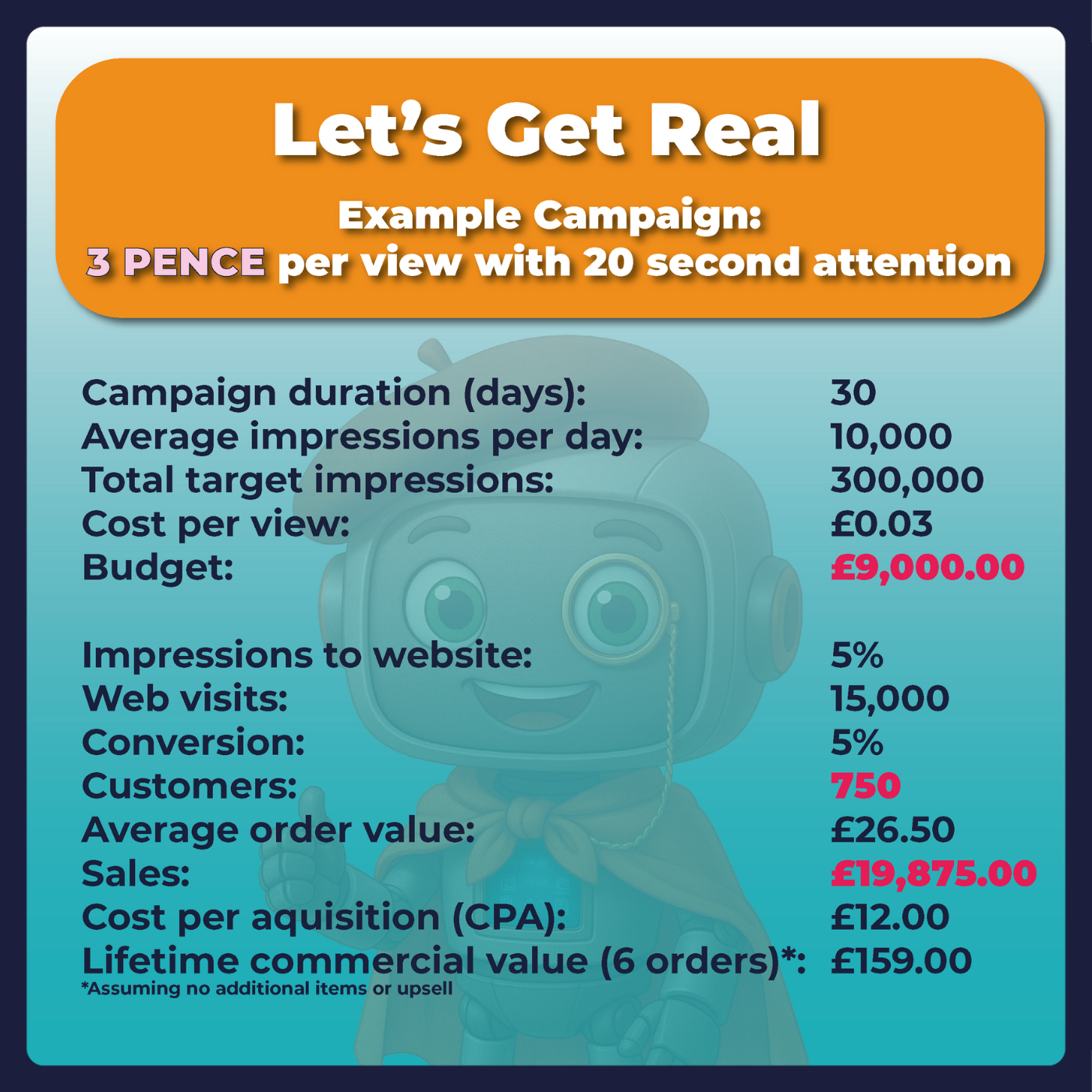 We will check and monitor impression deliveries for our clients. The frequency of data reporting varies from broadcaster to broadcaster. To keep things simple, we produce a monthly campaign delivery report, which is sent within 7 days of the end of the previous month, subject to the individual broadcaster’s terms and conditions.